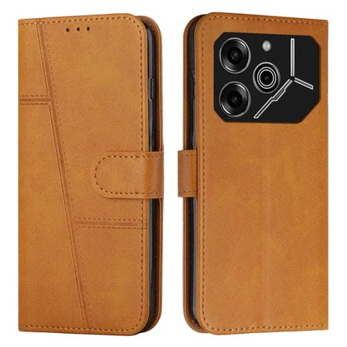 Funda para Tecno Pova 6 Pro de Cuero con Hebilla y Textura de Becerro (Amarillo)