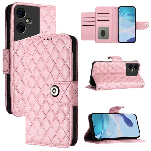 Funda de Cuero para Tecno Pova Neo 3 con Tapa Textura Rombal y Cordón (Rosa)