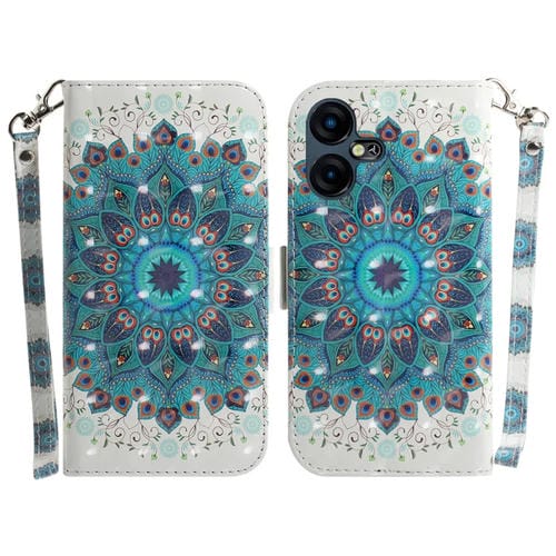 Funda de Cuero para Tecno Pova Neo 3 con Tapa Horizontal y Diseño 3D (Guirnalda de Pavo Real)