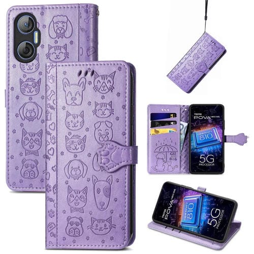 Funda de Cuero para Tecno Pova Neo 5G Cat And Dog en Relieve (Púrpura)