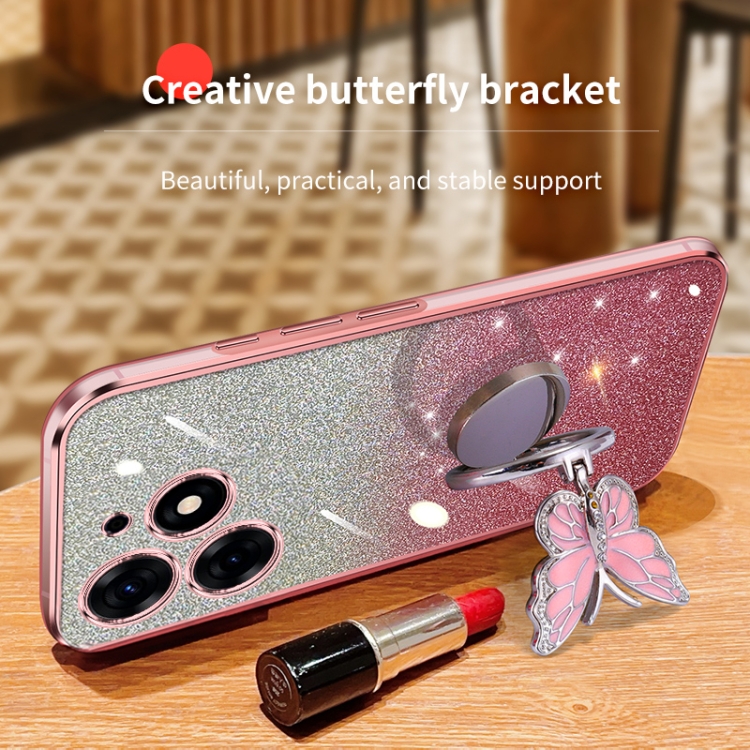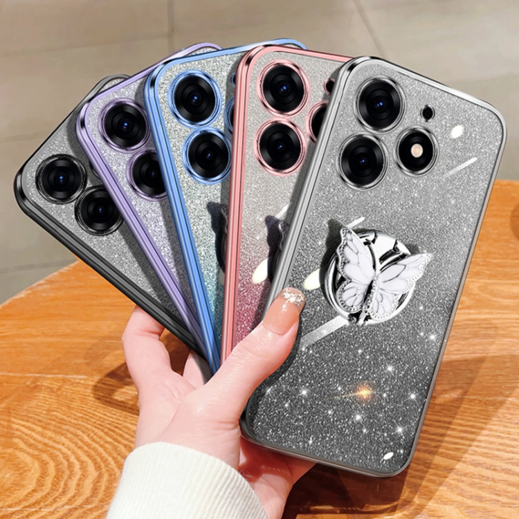 Funda para Tecno Spark 10 Pro TPU con Soporte Mariposa y Brillo Degradado (Negro)