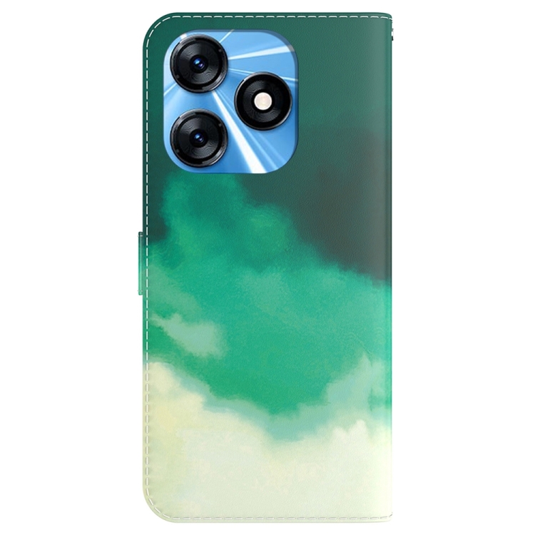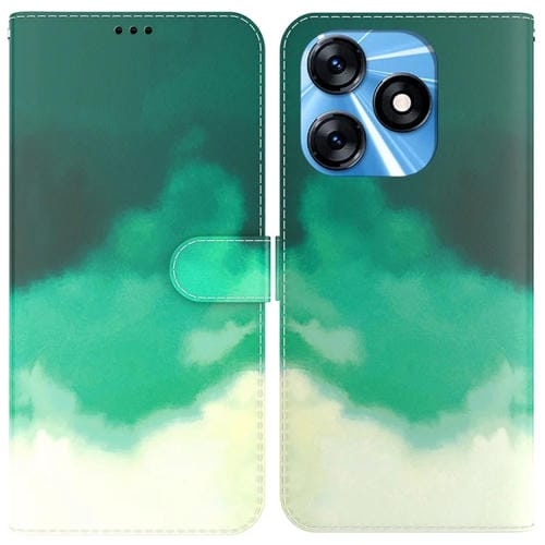 Funda de Teléfono Tecno Spark 10 / Spark 10C con Tapa de Cuero y Patrón Acuarela (Verde Cian)