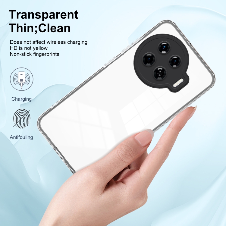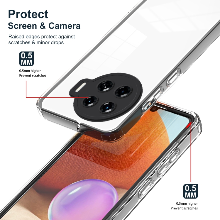 La parte Trasera está fabricada con material TPU antiamarilleo que mantiene la transparencia y evita el deterioro visual a largo plazo.