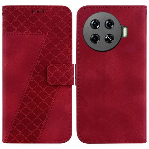 Funda de Cuero para Tecno Spark 20 Pro + 4G en Relieve Forma de 7 (Rojo)