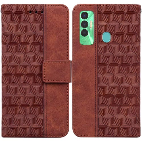 Funda para Tecno Spark 7P Caja de Cuero con Relieve Geométrico (Marrón)