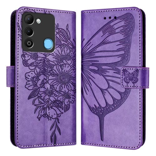 Funda de Cuero para Tecno Spark 9 con Mariposa en Relieve (Púrpura Claro)