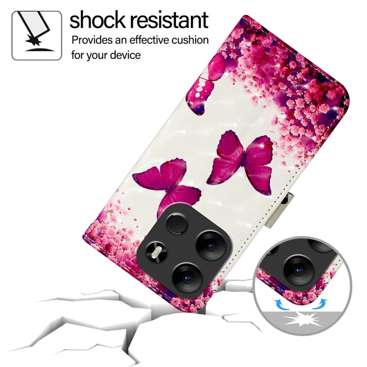 Funda para Tecno Spark Go 2023 / Pop 7 de Cuero con Tapa Horizontal y Pintura 3D (Mariposa Rosa)
