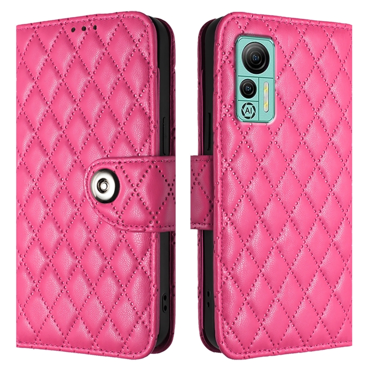 Funda para Ulefone Note 14 de Cuero con Tapa Textura Rómbica y Cordón (Rojo Rosa)