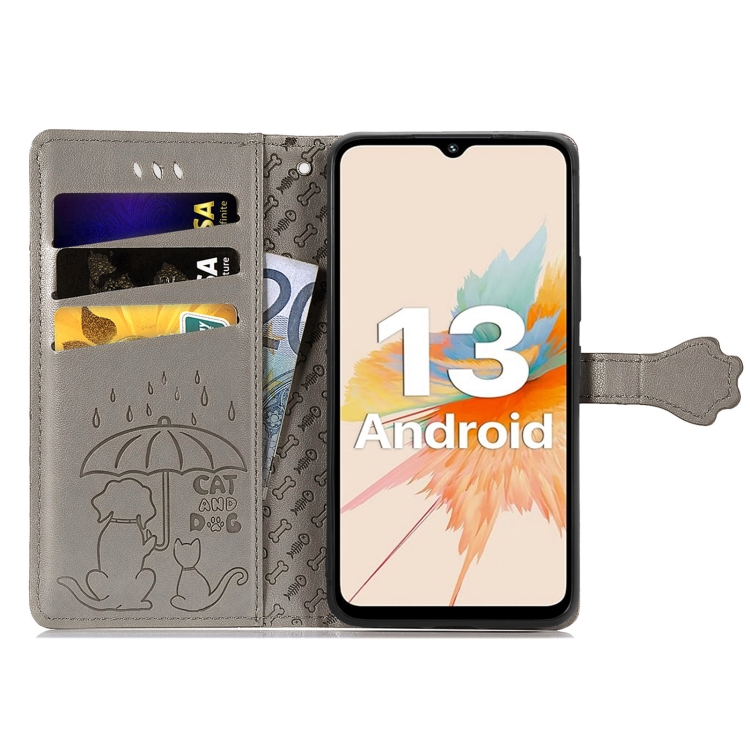 Funda de Cuero Umidigi A13 Pro 5G con Relieve Perros y Gatos (Gris)
