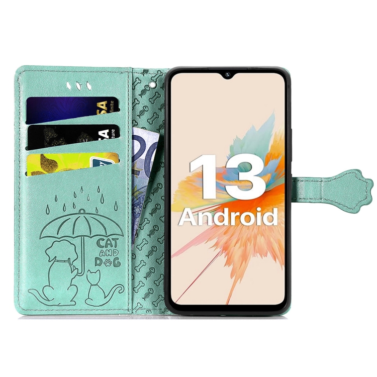 Funda de Cuero para Umidigi A13 Pro 5G con Relieve Perros y Gatos (Verde)