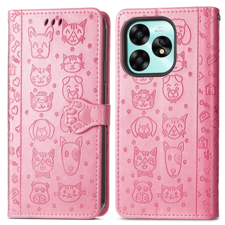 Funda para Umidigi A15C Cuero con Relieve de Perro y Gato (Rosa)