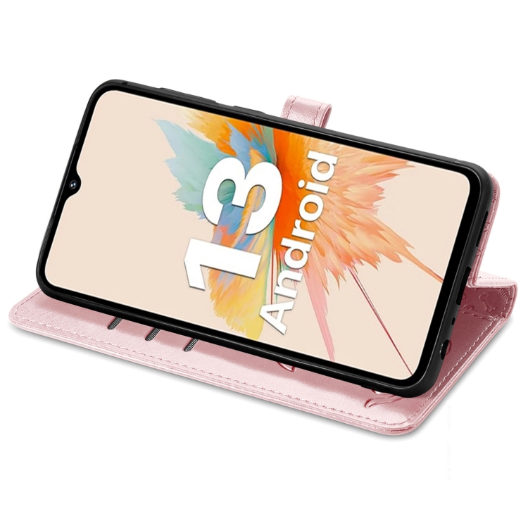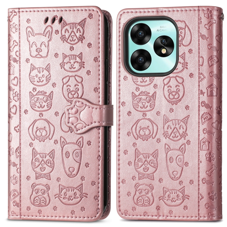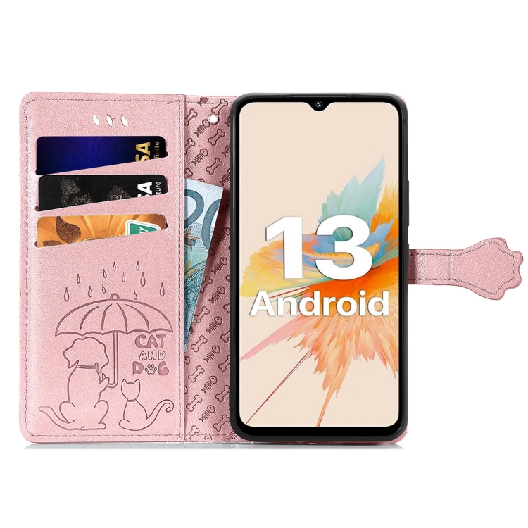 Funda para Umidigi A15C de Cuero con Relieve de Perros y Gatos (Oro Rosa)