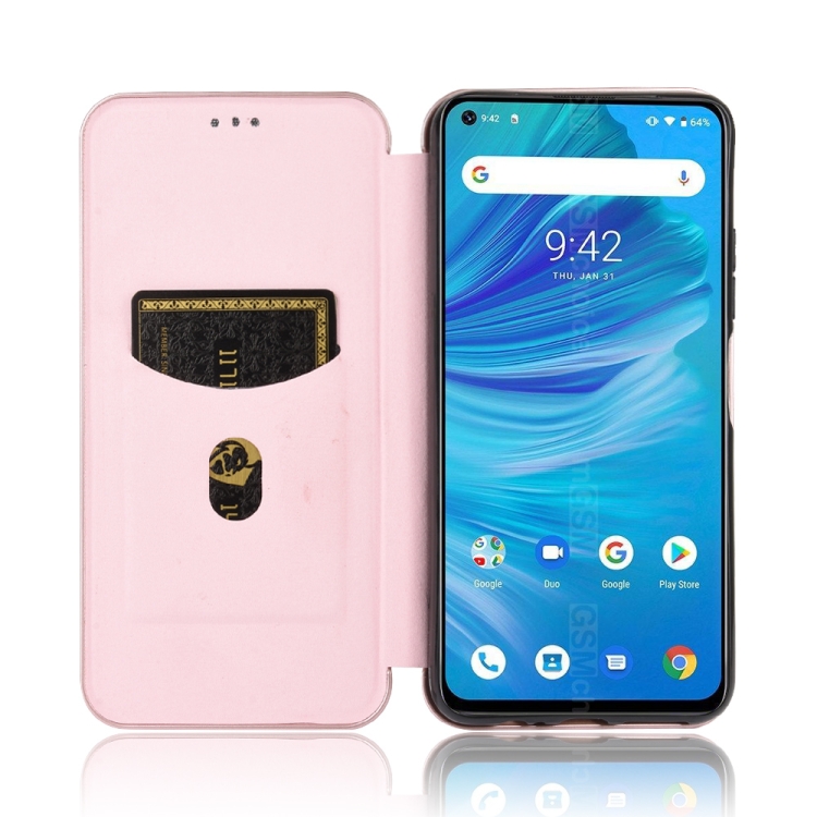 Funda para Umidigi F2 Cuero Fibra de Carbono Magnética Tapa Horizontal TPU + PC + PU (Rosa)