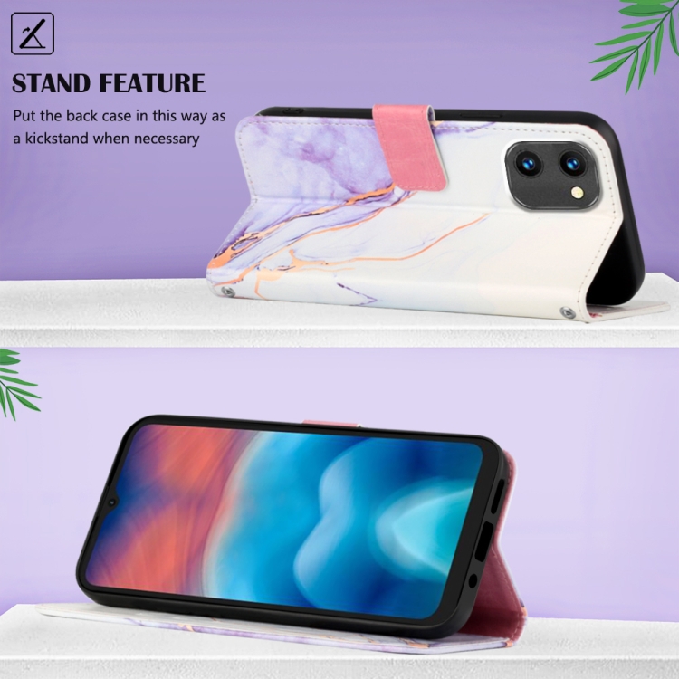 Funda Flip de Cuero para Umidigi G1 Pt003 Patrón Mármol (Blanco Púrpura Ls006)