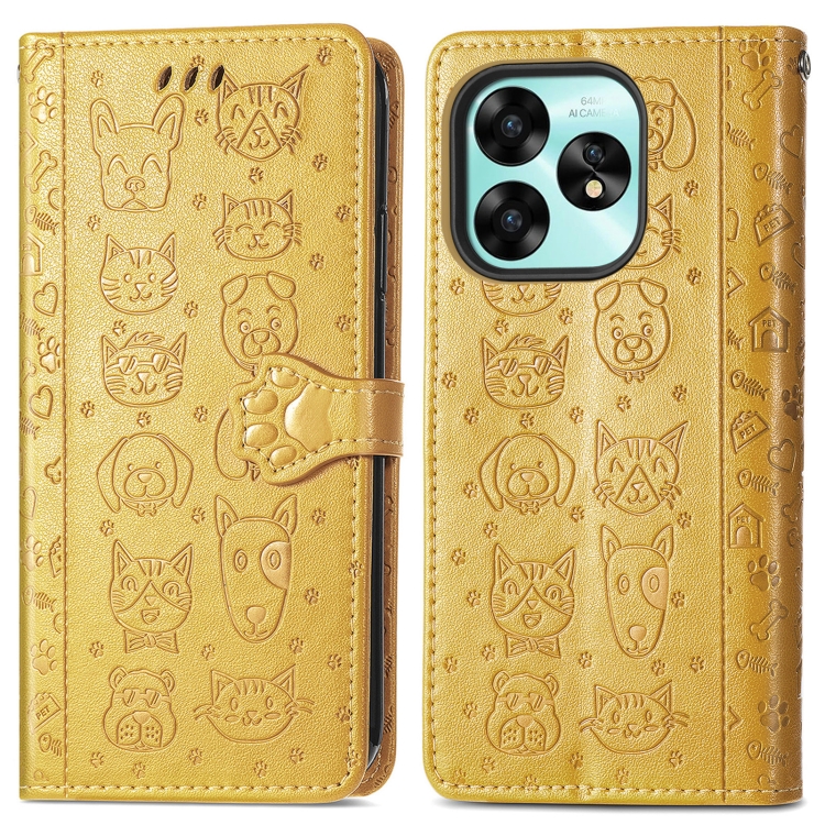 Funda de Cuero para Umidigi G3 G3 Max G3 Plus con Relieve Perros y Gatos (Amarillo)