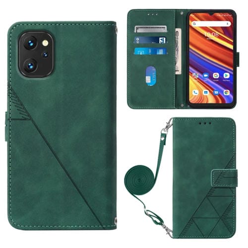 Funda de Cuero para Umidigi Power 7 y Power 7S Crossbody con Tapa en Relieve (Verde Oscuro)