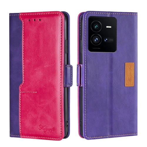 Para Vivo Iqoo 10 Pro 5G Caja de Teléfono de Cuero con Hebilla Lateral de Color de Contraste (Púrpura + Rosa Roja)