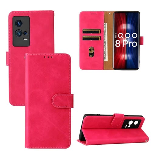 Para Vivo Iqoo 8 Pro Solida Color de Piel Siente Hebilla Magnética Funda de Cuero Horizontal Flip Pu con Soporte y Ranuras para Tarjetas (Oro Rosa)