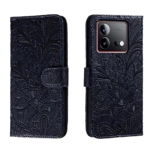 Para Vivo Iqoo Neo8 Funda para Teléfono de Cuero con Tapa y Estampado de Flores de Encaje (Azul Oscuro)