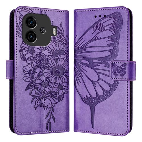 Para Vivo Iqoo Z9 / Iqoo Z9 Turbo 5G Funda de Cuero para Teléfono con Mariposa En Relieve (Púrpura Claro)
