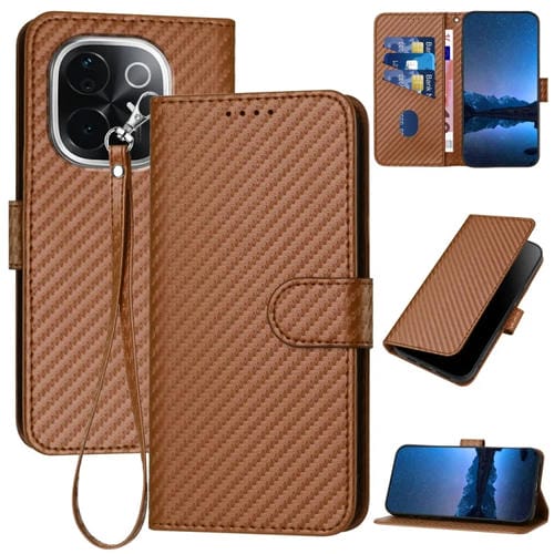 Funda de Cuero con Hebilla de Fibra de Carbono y Cordón para Vivo Iqoo Z9S Pro / T3 Pro 5G India Yx0070 (Café)