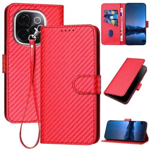 Funda de Cuero con Hebilla de Fibra de Carbono y Cordón para Vivo Iqoo Z9S Pro / T3 Pro 5G India Yx0070 (Rojo)