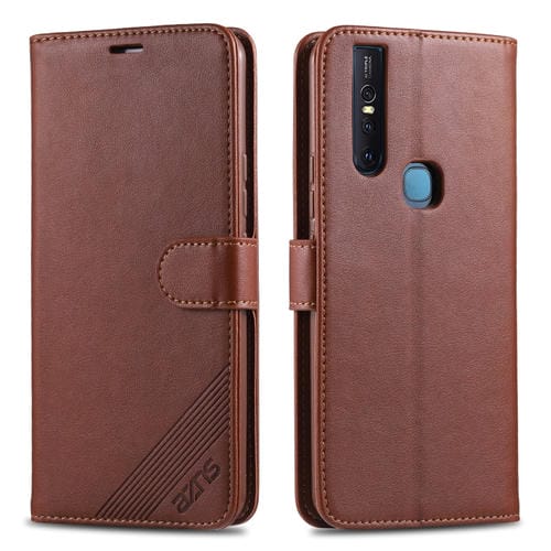 Para Vivo S1 / V15 Azns Funda de Cuero con Tapa Horizontal con Textura de Piel de Oveja con Soporte, Ranuras para Tarjetas y Billetera (Marrón)