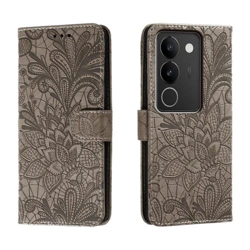Para Vivo S17 Funda de Cuero con Tapa y Estampado de Flores de Encaje (Gris)