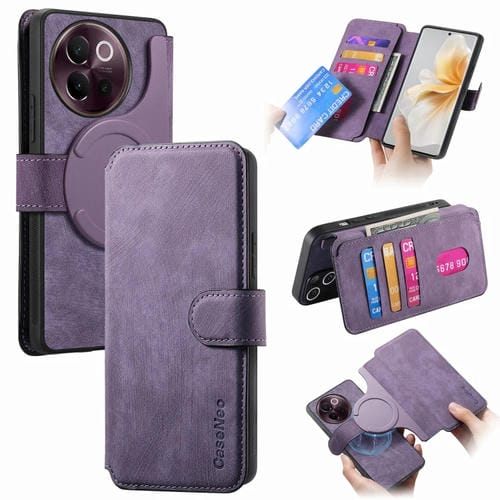 Para Vivo V40 Lite Caseneo Magsafe Rfid Funda de Cuero Retro Antirrobo para Teléfono (Púrpura)