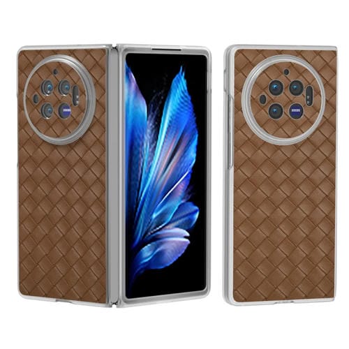 Para Vivo X Fold3 Funda para Teléfono de Pu con Marco Translúcido Esmerilado con Textura Tejida (Marrón)