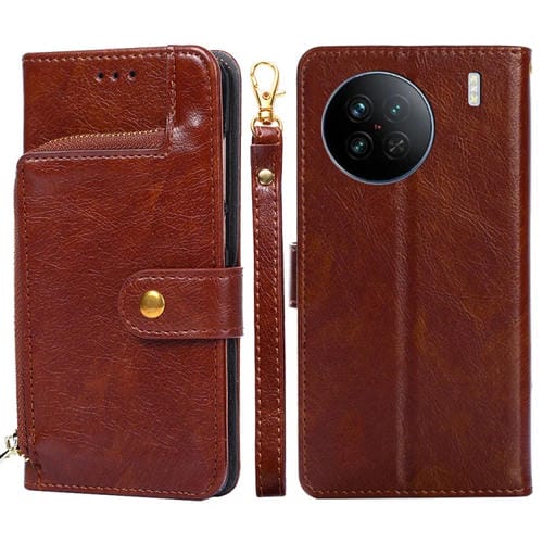 Para Vivo X90 Funda de Cuero con Cremallera para Teléfono (Marrón)