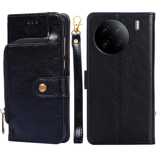 Para Vivo X90 Pro 5G Funda de Cuero con Cremallera para Teléfono (Negro)