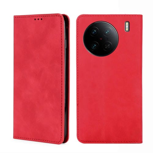 Para Vivo X90 Pro 5G Skin Feel Magnetic Horizontal Flip Leather Phone Case (Rojo)