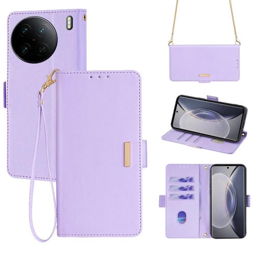 Para Vivo X90 Pro Funda de Cuero para Teléfono con Cadena Cruzada (Púrpura)