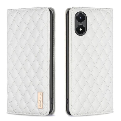 Para Vivo Y02S Diamond Lattice Magnetic Leather Flip Phone Case (Blanco)