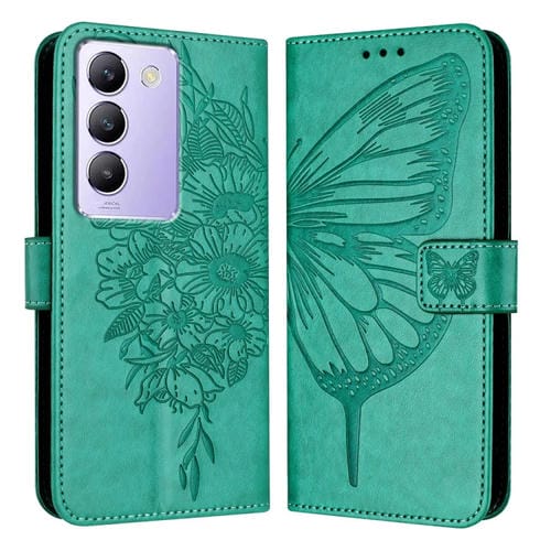 Para Vivo Y100 5G Idn / Y200E 5G Funda para Teléfono de Cuero con Mariposa En Relieve Global (Verde)