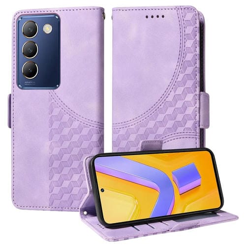 Para Vivo Y100 Idn / Y200E Funda para Teléfono de Cuero Estrellado con Rombo En Relieve Global (Púrpura)