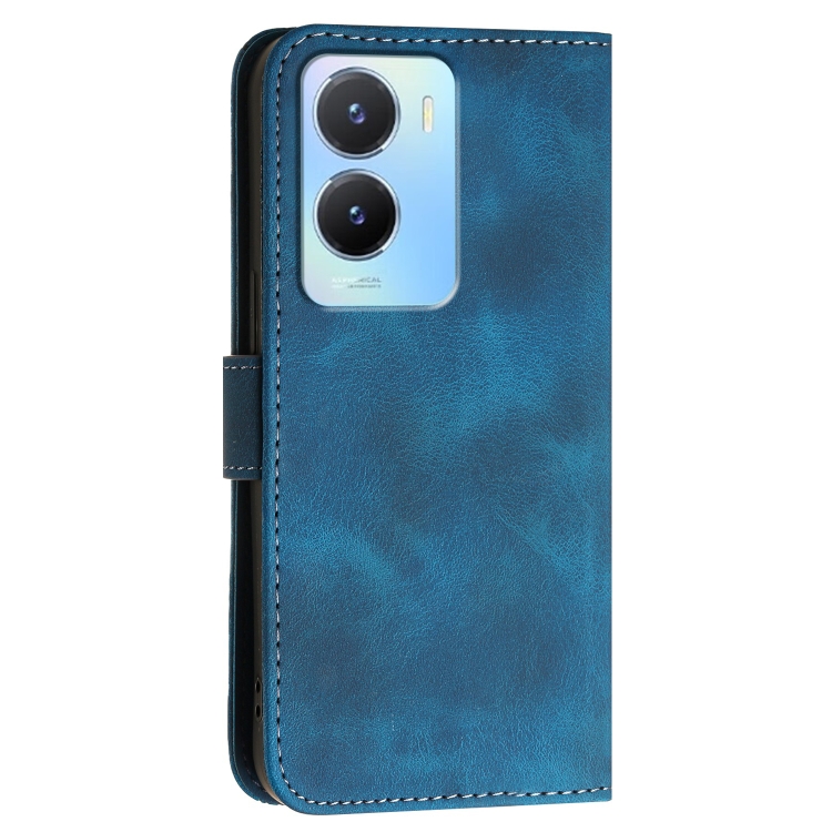Para Vivo Y16 4G Global Yx0080 Grid Butterfly Patrón En Relieve Funda de Cuero con Tapa para Teléfono con Cordón (Azul Oscuro)