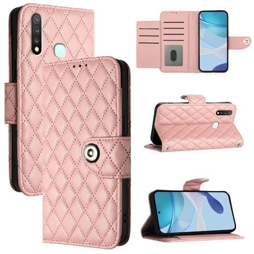 Para Vivo Y19 / U3 / Y5S / Z5I / U20 Funda para Teléfono con Tapa de Cuero con Textura Rómbica y Cordón (Rosa Coral)