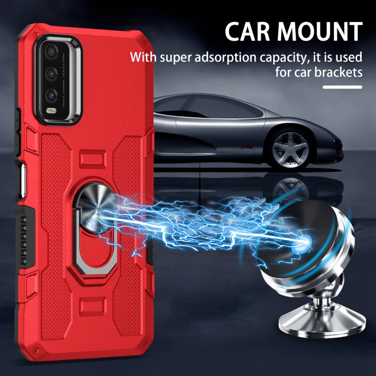 Para Vivo Y20 Ring Holder Armor Hybrid Phone Case (Rojo)