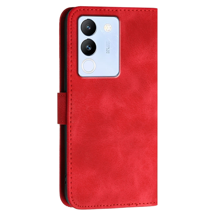 Para Vivo Y200 5G Global Yx0080 Grid Butterfly Patrón En Relieve Funda de Cuero con Tapa para Teléfono con Cordón (Rojo)