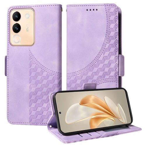 Para Vivo Y200 / V29E Funda para Teléfono de Cuero Estrellado con Rombo En Relieve Global (Púrpura)