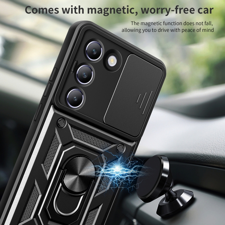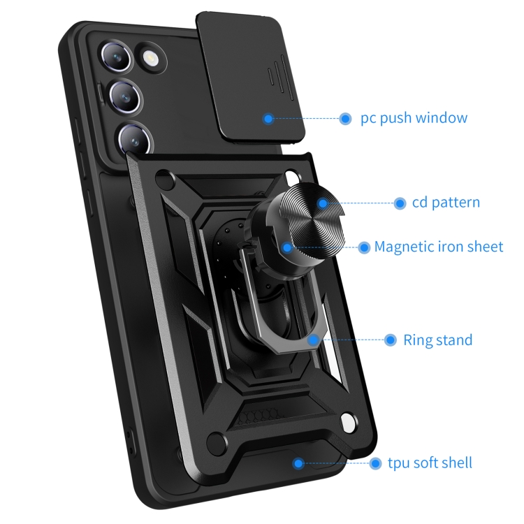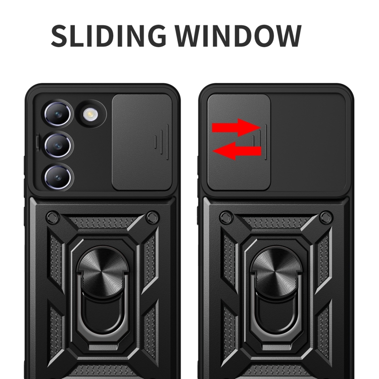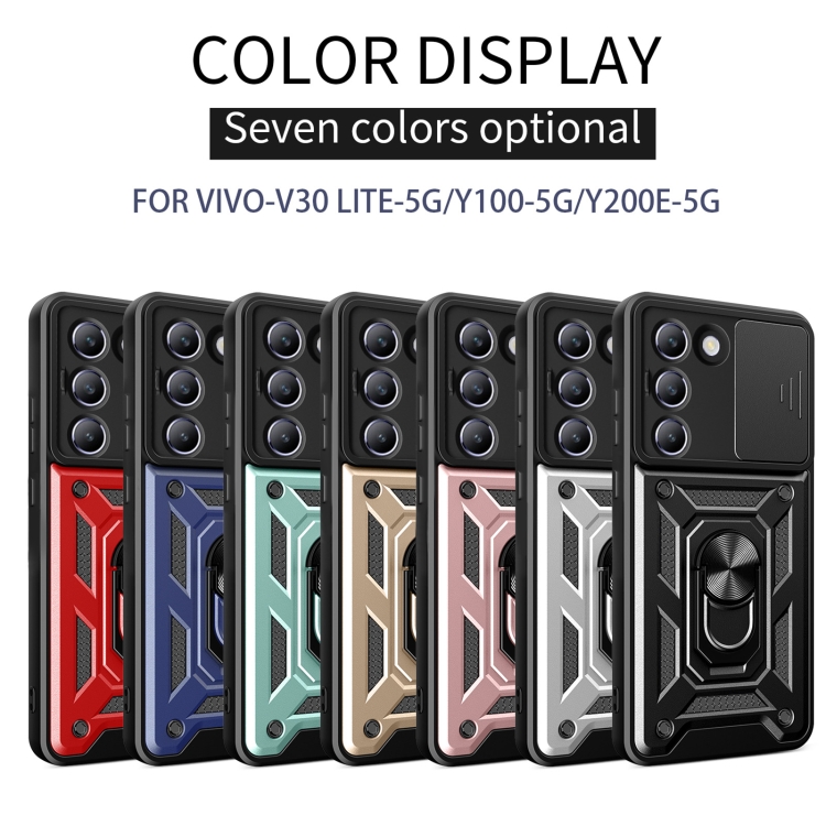 Para Vivo Y200E 5G Diseño de Cubierta de Cámara Deslizante Global Estuche para Teléfono TPU + PC (Rojo)
