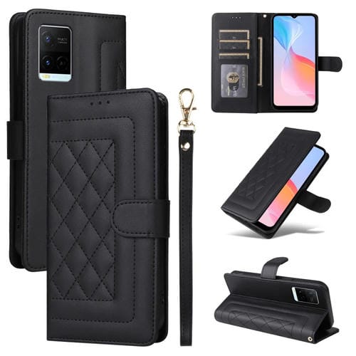 Para Vivo Y21 / Y33S Funda para Teléfono con Tapa de Cuero Diamond Lattice (Negro)