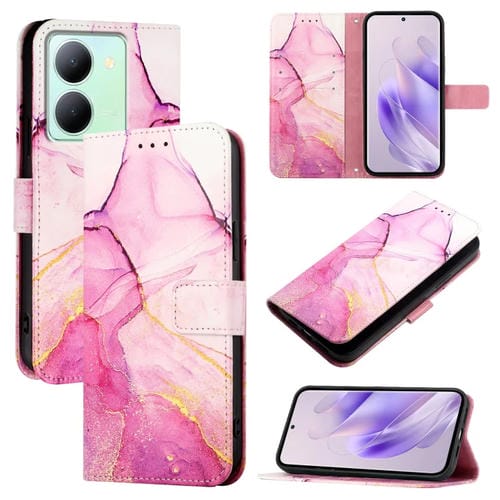 Para Vivo Y27 5G / Y27S 4G Global Pt003 Funda para Teléfono de Cuero con Tapa con Patrón de Mármol (Rosa, Morado y Dorado)