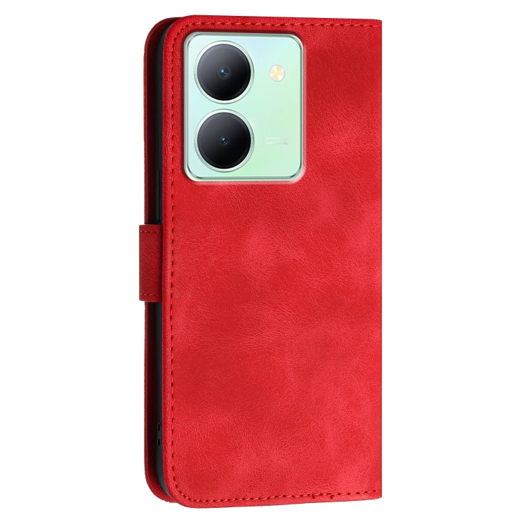 Para Vivo Y27 5G / Y36 4G India Yx0080 Funda de Cuero con Tapa y Patrón En Relieve de Mariposa y Cuadrícula con Cordón (Rojo)