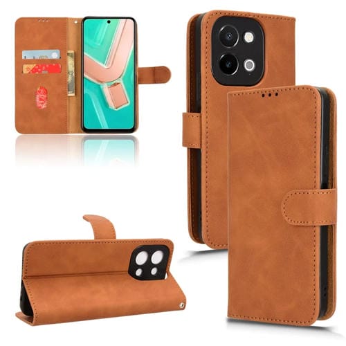 Para Vivo Y28 4G Skin Feel Funda de Teléfono de Cuero con Tapa Magnética (Marrón)
