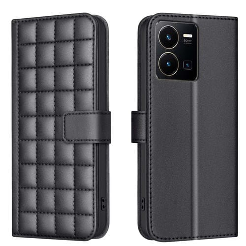 Para Vivo Y35 4G / Y22S Funda de Cuero para Teléfono con Textura Cuadrada (Negro)