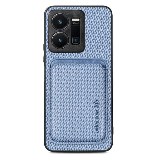 Para Vivo Y35 Funda de Tarjeta de Cuero de Fibra de Carbono Magsafe (Azul)