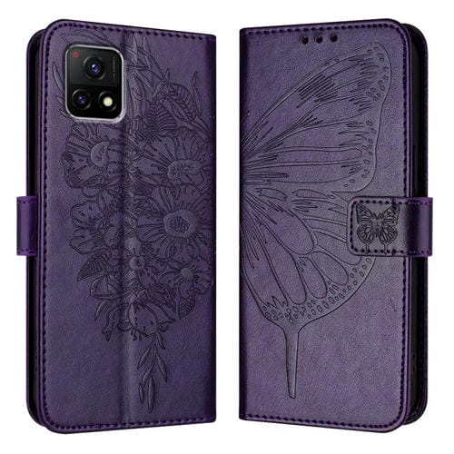 Para Vivo Y52S 5G / Iqoo U3 / Y31S 5G Funda para Teléfono de Cuero con Mariposa En Relieve (Púrpura Oscuro)